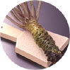 わさびは アブラナ科の多年性草木で、静岡、島根などが主な産地です。特に伊豆のわさびは有名で、全国の生産高の約1/4を占めています。